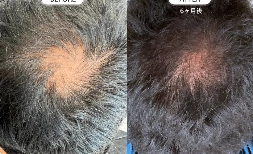 症例写真1|頭頂部 頭頂部1 当院で施術を行った症例の一部をご紹介します。 お一人ずつの骨格・髪質・毛流れに合わせてデザインし、 自然な仕上がりと生着率の高さを両立しています。 施術部位・密度・デザインはカウンセリングで細かく調整し、 将来的な薄毛進行も考慮して無理のない設計を行っています。 ※効果には個人差があります。